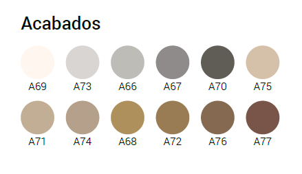 - Frias: Blanco Reflejo, Gris Encuentro, Gris Equilibrio, Gris Sombreado
